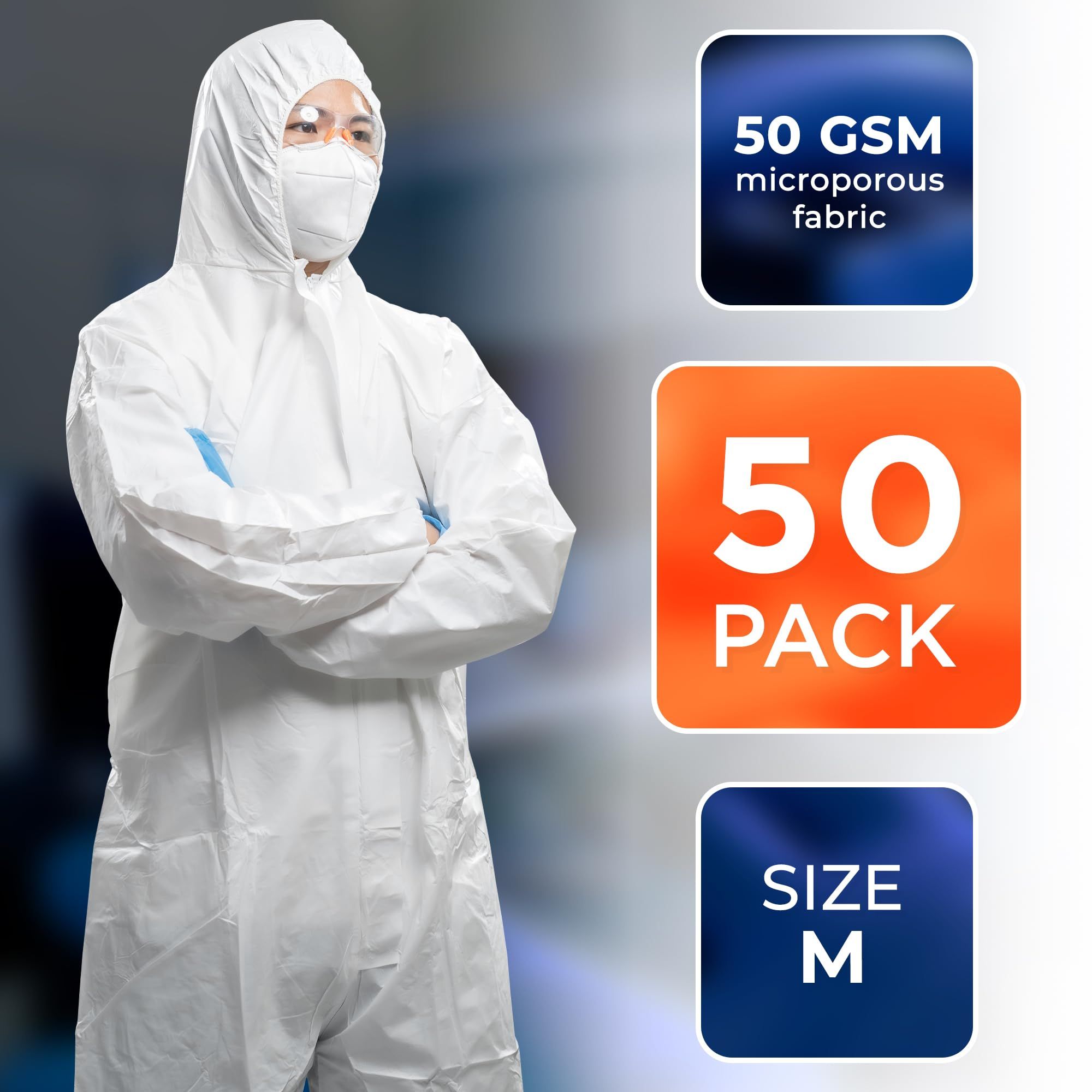 1.Pack of 50 Disposable Coveralls for Men and Women Medium. Discover the ultimate protection with disposable coverall. Engineered for hazard-prone tasks like mold removal and spray painting, painters suit offers top-notch security without compromising comfort.