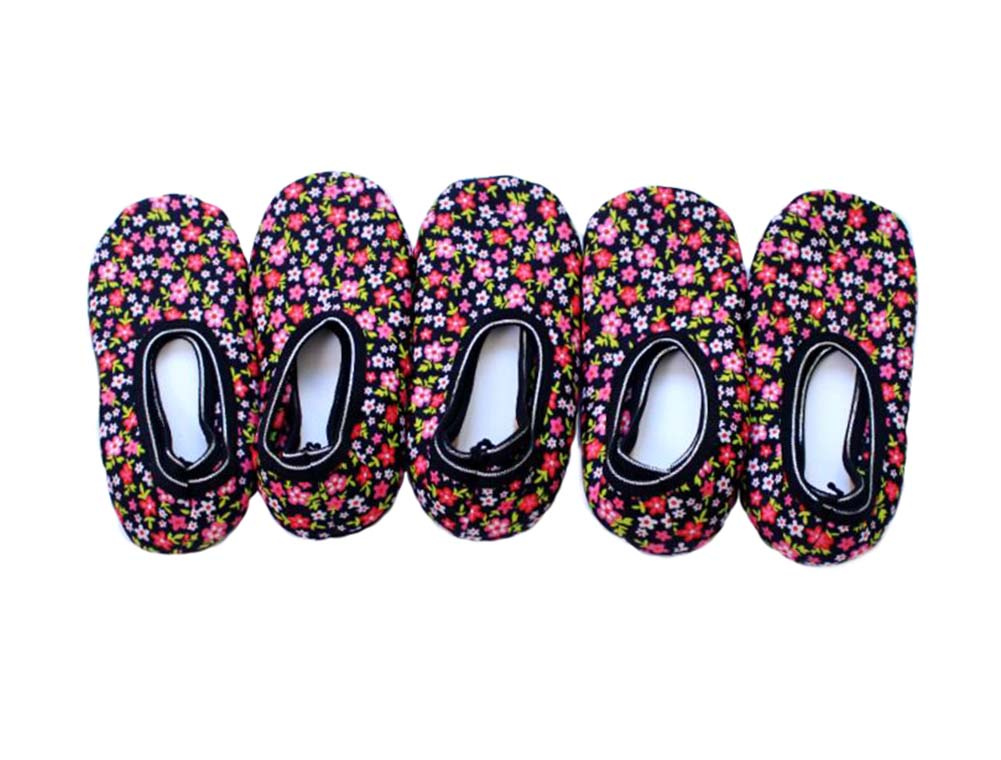 Slipper Socks for Womens Cozy Warm Indoor Boat Socks With Grippers, 5 Pairs Black Foral Slipper Socks for Womens Cozy Warm Indoor Boat Socks With Grippers, 5 Pairs Black Foral