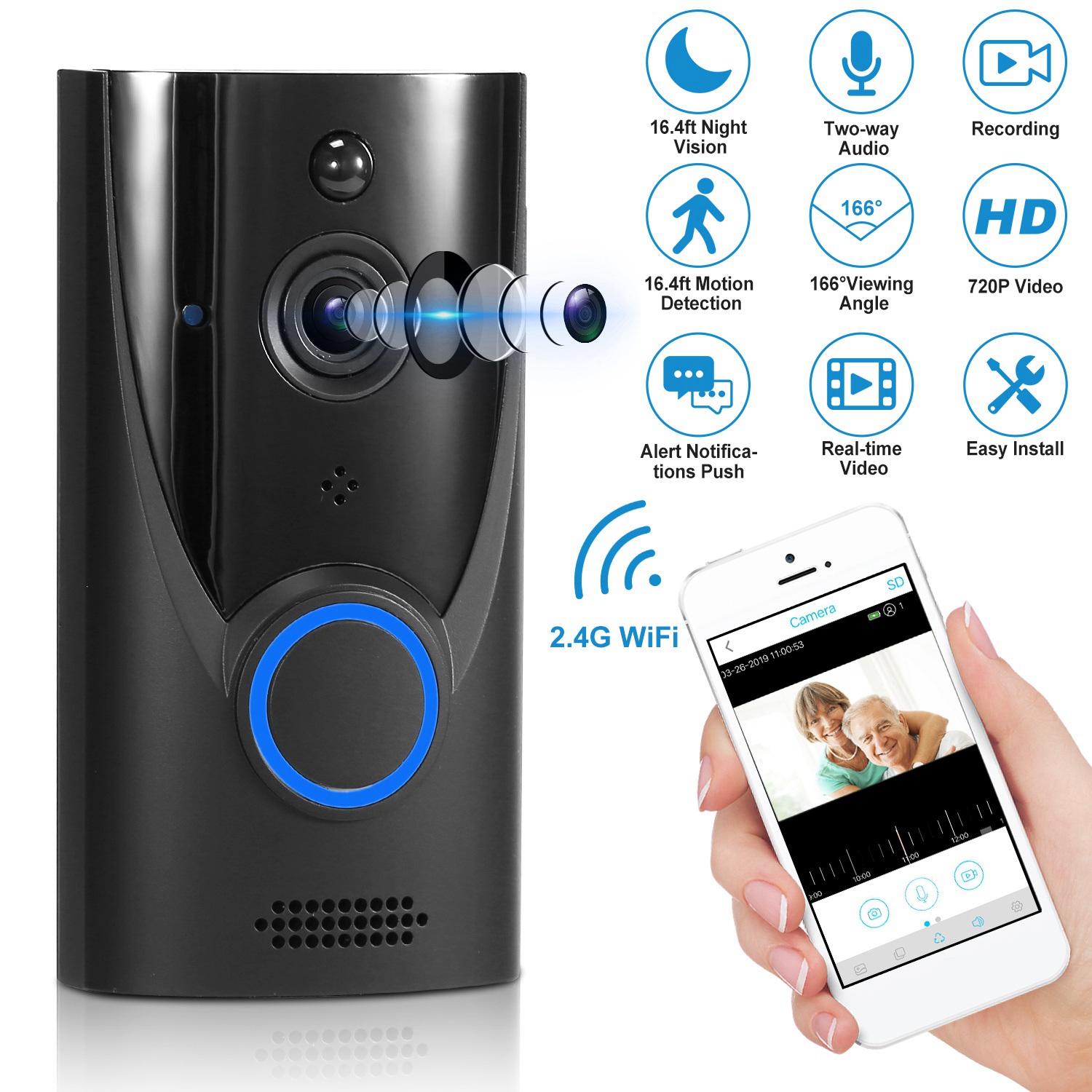 Home > WiFi Video Doorbell Wireless Door Bell 720P HD WiFi Security Camera w/ Two-way Talk PIR Motion Detection IR Night Vision Home Security Camcorder Offic